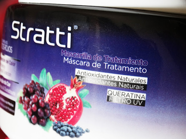 A Stratti apresenta várias gamas destes produtos, de diferentes aromas, que podem ver no site, clicando AQUI. Os que eu experimentei são os de Frutos Vermelhos, que é um cheiro que por acaso eu gosto muito, que são especialmente para cabelos pintados, de manutenção da cor. O meu cabelo não é pintado, mas não há problema porque a única diferença de um shampoo normal é que este apresenta mais hidratação devido ao facto de ser para cabelos estragados.